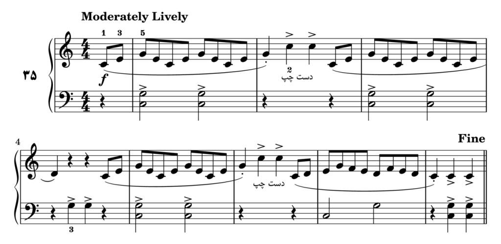 آموزش پیانو پیانو برای مبتدیها برای علاقمندان و هنرجویانی که میخواهند نوازندگی پیانو یا موسیقی را شروع نمایند. در این آموزش شما به هیچ پیش زمینهی قبلی احتیاج ندارید. ادامه و ثبتنام پیانو سطح مقدماتی برای نوازندگانی که از قبل با پیانو و موسیقی آشنایی دارند و یا میخواهند شروعی دوباره داشته باشند. پیانو مبتدی 2 میتواند پیش نیازی مناسب برای این سطح باشد.اگر نواختن نت زیر برای شما آسان است این سطح مناسب شما است. ادامه و ثبتنام پیانو سطح 1 آموزش اجرا محور پیانو سطح 1. پیانو مقدماتی میتواند پیش نیازی مناسب برای شروع این سطح باشد.اگر نواختن نت زیر برای شما آسان است این سطح مناسب شما است. ادامه و ثبتنام پیانو سطح 2 آموزش اجرا محور پیانو سطح 2. پیانو سطح 1 میتواند پیش نیازی مناسب برای شروع این سطح باشد.اگر نواختن نت زیر برای شما آسان است این سطح مناسب شما است. ادامه و ثبتنام پیانو سطح 3 آموزش اجرا محور پیانو سطح 3. پیانو سطح 2 میتواند پیش نیازی مناسب برای شروع این سطح باشد. ادامه و ثبتنام پیانو سطح 4 آموزش اجرا محور پیانو سطح 4. پیانو سطح 3 میتواند پیش نیازی مناسب برای شروع این سطح باشد. ادامه و ثبتنام پیانو سطح 5 آموزش اجرا محور پیانو سطح 5. پیانو سطح 4 میتواند پیش نیازی مناسب برای شروع این سطح باشد.